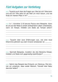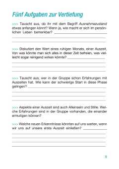 Dafür gibt es neben den inhaltlichen Texten auch vier Rubriken mit Fragen, um das Gelesene zu vertiefen, bzw. mit der Gruppe ins Gespräch zu kommen.